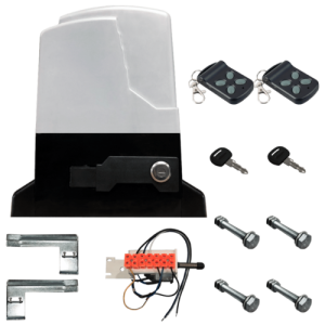 El Kit Incluye: 1 Motor, 2 Controles Remotos, 1 Central, 2 Lenguetas de Topes de Final de Carrera, 2 Llaves, 4 Pernos de Anclaje y 1 Manual de Instalación.